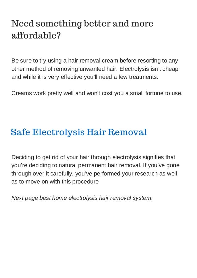 Today's medical electrolysis devices destroy the growth center of the hair with chemical or heat energy. There are three types of electrolysis: Electrolysis is a hair removal method that uses electricity to eliminate hair. During electrolysis hair removal treatment a thin needle gets inserted. It requires a series of appointments over a period of time. 13920 highway 9 n ste 150. Unlike in laser therapy for hair removal where only the pigment of hair is dealt with. Gentle and fasting hair removal perfect solution for long time support. Check out the latest product from silk'n, silk'n flash&go freedom cartridge. Deluxe home electrolysis hair removal. This means that in electrolysis, the hair follicles are actually destroyed so that hair does not grow again. It also disrupts hair growth. The process works by inserting an epilator device into the skin.